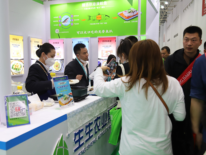 展會期間,笙笙創鮮產品推介會隆重舉行,生生農業集團通過直播間向大家熱情介紹了笙笙創鮮的明星產品“健身魚扒”、極具風味的“脆鯇魚片”和“膠原小紅瓶”-“即食膠原魚凍”。