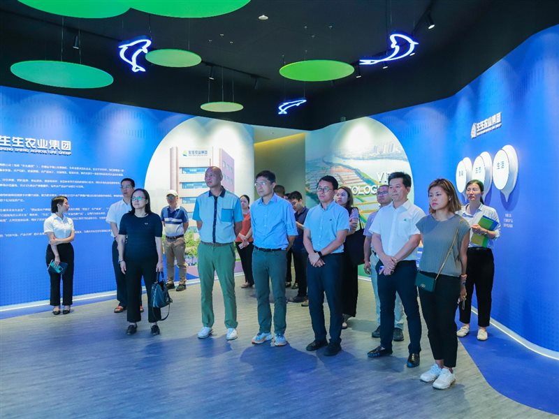 2023年6月9日,香港特別行政區漁農自然護理署高級漁業主任周永權、李麗芬,廣東省農業農村廳領導黃海霞、郭奕惠等一行11人,蒞臨生生農業集團綠源創新中心,就水產養殖品種、養殖技術等板塊開展實地調研,佛山市市委、順德區區委等領導陪同到訪,生生農業集團高管團隊熱情接待。