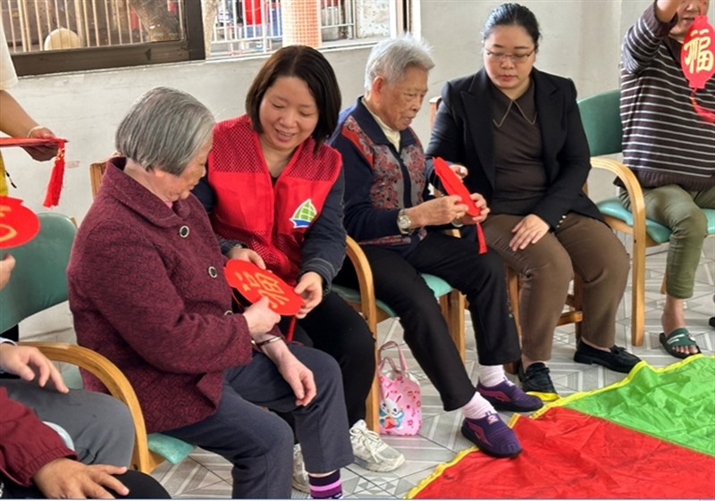 在老人中心,愛心義工隊成員與老人們圍坐在一起,暢談家常,聆聽他們的故事,分享生活的點滴。隊員們還參與到老人們日常的游戲當中來,在輕松愉快的氛圍中,老人們綻放出幸福的笑容,歡聲笑語充滿了整個活動現場。