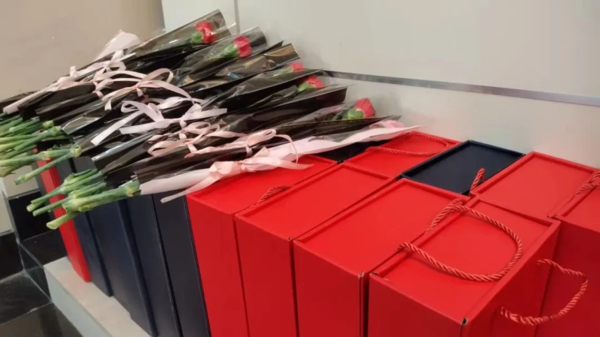 節日暖心福利,3月8日,早上7點25分集團董事長洪錫標帶領著總裁辦、人力資源與行政部、財務管理中心、銷售部、 工程部一眾男神代表,準備充足的節日暖心福利禮品。