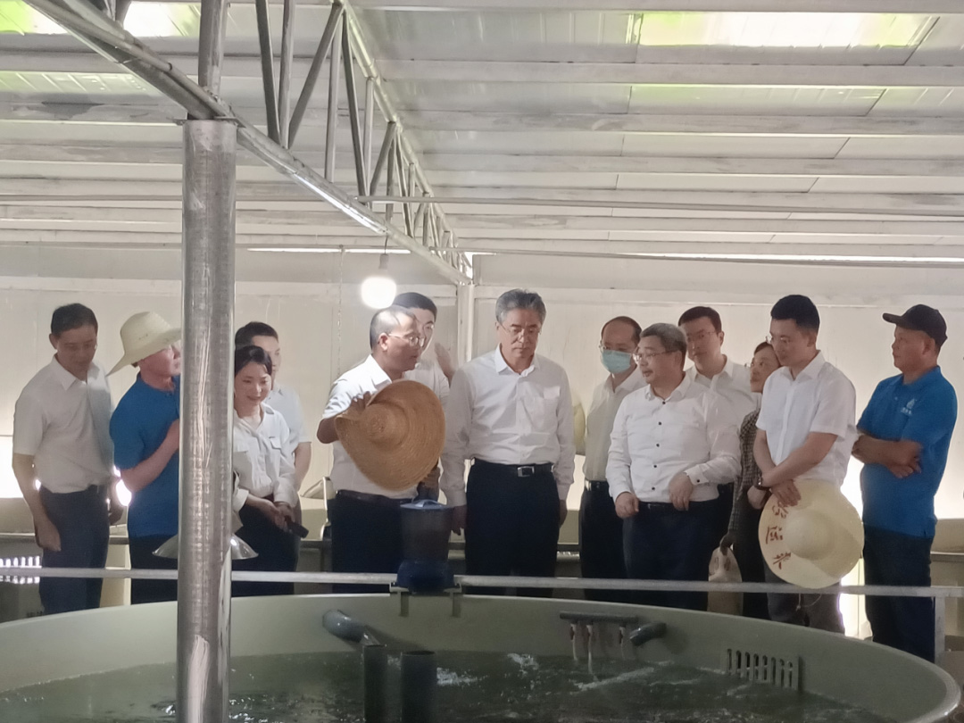 調研組一行走進稻漁產業化發展示范園區,對生產育苗車間、倉儲車間、稻漁共生示范田進行考察,并對我司積極推行稻漁共生示范實現聯農帶富的模式給予高度肯定。在視察生生循環水養殖系統過程中,調研組認真聽取了集團董事長洪錫標對發展現代智慧漁業的詳細講解。